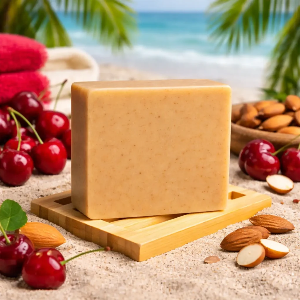 Indulge in the exotic allure of Cherry Almond Palm Trees, where the sweet, fruity scent of cherries meets the rich, nutty aroma of almonds. This luxurious soap combines natural palm oil to produce a creamy lather that cleanses and hydrates your skin, providing a rejuvenating experience. The vivid cherry-red and creamy white swirls reflect the tropical beauty of palm-fringed getaways.