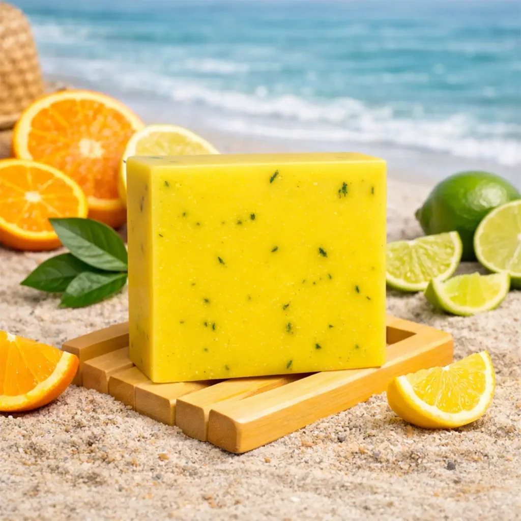 Awaken your senses with Citrus Surf, a soap bar that combines the zesty essence of oranges, lemons, and limes for a vibrant citrus burst. This invigorating blend delivers a refreshing cleanse, leaving your skin revitalized and glowing.